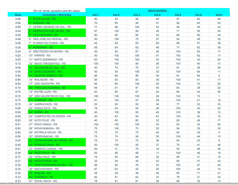 Na avaliação do quadrimestre anterior, Roca Sales ocupou a 7ª posição no ranking nacional e 1ª posição da região 29 e 30, subindo neste quadrimestre e liderando o ranking de 497 municípios do Rio Grande do Sul ocupando a primeira posição.